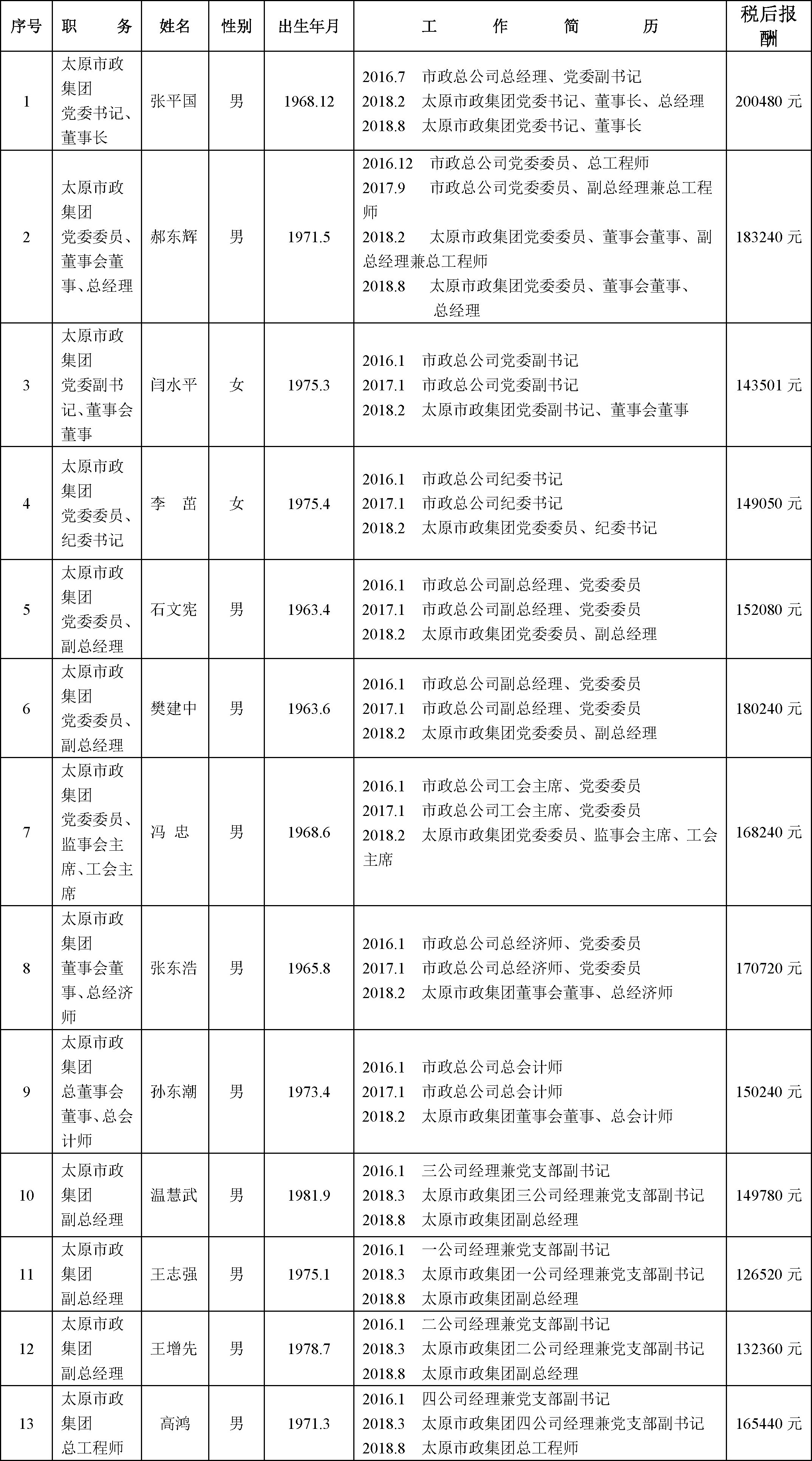 二、太原市政集團(tuán)班子成員
