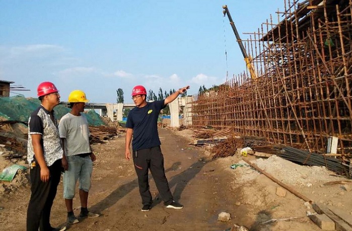 蒙山大街與濱河西路互通立交工程涵蓋橋梁工程和道路工程兩個(gè)部分,是四公司近些年來(lái)承建的難度較大的一項(xiàng)橋梁工程。該工程建設(shè)任務(wù)重,施工難度大,公司領(lǐng)導(dǎo)高度重視,委派李素偉為項(xiàng)目經(jīng)理。有人勸他不要接這“燙手的山芋”,可他卻說(shuō):“我是一名黨員,沖鋒在前是每個(gè)黨員干部義不容辭的責(zé)任?!睉{借這樣的擔(dān)當(dāng)和勇氣,他不畏艱難,勇挑重?fù)?dān),迅速組建項(xiàng)目部,第一時(shí)間帶領(lǐng)施工人員進(jìn)場(chǎng)施工。進(jìn)場(chǎng)后,他主動(dòng)協(xié)調(diào)各方關(guān)系,上午到濱河公園產(chǎn)權(quán)單位,協(xié)調(diào)苗木遷移問(wèn)題,下午趕赴設(shè)計(jì)院協(xié)調(diào)地勘與圖紙?jiān)O(shè)計(jì)工作,為工程推進(jìn)贏得了寶貴時(shí)間。施工中,為全面推進(jìn)工程進(jìn)度,他充分利用一切資源,采取“多點(diǎn)開(kāi)花,重點(diǎn)投入”的施工方式,提高工作效率。同時(shí),為避免地下管線施工與其他工序沖突,他安排技術(shù)人員對(duì)現(xiàn)狀地下管線進(jìn)行詳細(xì)摸排,及時(shí)確定煤氣、自來(lái)水、國(guó)防光纜等管線的準(zhǔn)確位置,并將相關(guān)數(shù)據(jù)提供給設(shè)計(jì)院,為工程后續(xù)施工奠定了堅(jiān)實(shí)的基礎(chǔ)。