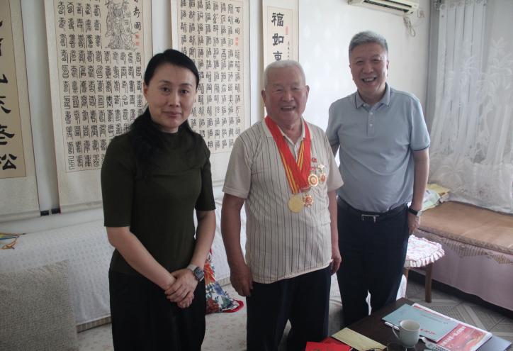 領(lǐng)導(dǎo)們一行來(lái)到“光榮在黨50年”離休老黨員陳維崗家中,與其親切交談,詳細(xì)了解他的健康狀況和生活情況。集團(tuán)公司黨委書(shū)記、董事長(zhǎng)郝東輝在送上慰問(wèn)金和黨史學(xué)習(xí)教育口袋書(shū)的同時(shí),親手將熠熠生輝的“光榮在黨50年”紀(jì)念章佩戴在老人胸前,向他致以節(jié)日的問(wèn)候,并希望陳老在保重身體、安享晚年的同時(shí),能夠繼續(xù)關(guān)心和支持集團(tuán)公司發(fā)展。