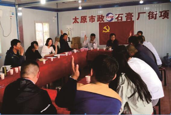 4月18日,萬柏林片區(qū)臨時(shí)聯(lián)合黨支部正式成立。萬柏林片區(qū)臨時(shí)聯(lián)合黨支部由太原市城市建設(shè)管理中心和太原市政建設(shè)集團(tuán)有限公司、盛玖建設(shè)集團(tuán)有限公司、中鐵六局集團(tuán)有限公司3家參建單位組成。