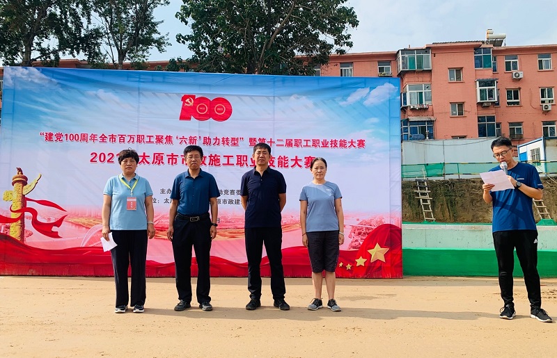 7月27日,太原市“建黨100周年全市百萬職工聚焦‘六新’助力轉(zhuǎn)型”暨第十二屆職工職業(yè)技能大賽——2021年太原市市政工程質(zhì)量檢驗(yàn)員實(shí)操比賽在集團(tuán)公司迎澤大街東延建設(shè)工程施工現(xiàn)場(chǎng)舉行。集團(tuán)公司黨委委員、監(jiān)事會(huì)主席、工會(huì)主席馮忠,總工程師高鴻參加了開幕式。