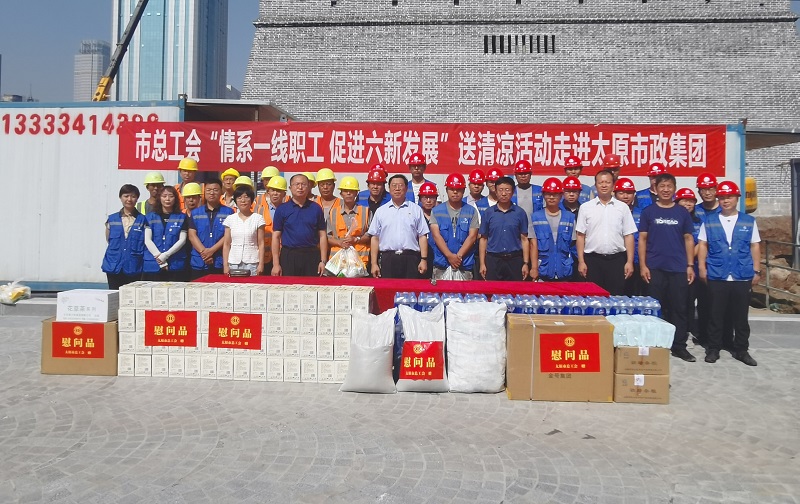 太原市總工會(huì)黨組成員、副主席汪倫來(lái)到施工現(xiàn)場(chǎng),對(duì)施工人員進(jìn)行了慰問(wèn),并為他們送上冰糖、綠豆、沙棘汁等慰問(wèn)品,感謝他們?yōu)槌鞘薪ㄔO(shè)作出的貢獻(xiàn),同時(shí),他還叮囑大家要注意夏季防暑,合理安排工作時(shí)間,注意自身安全。