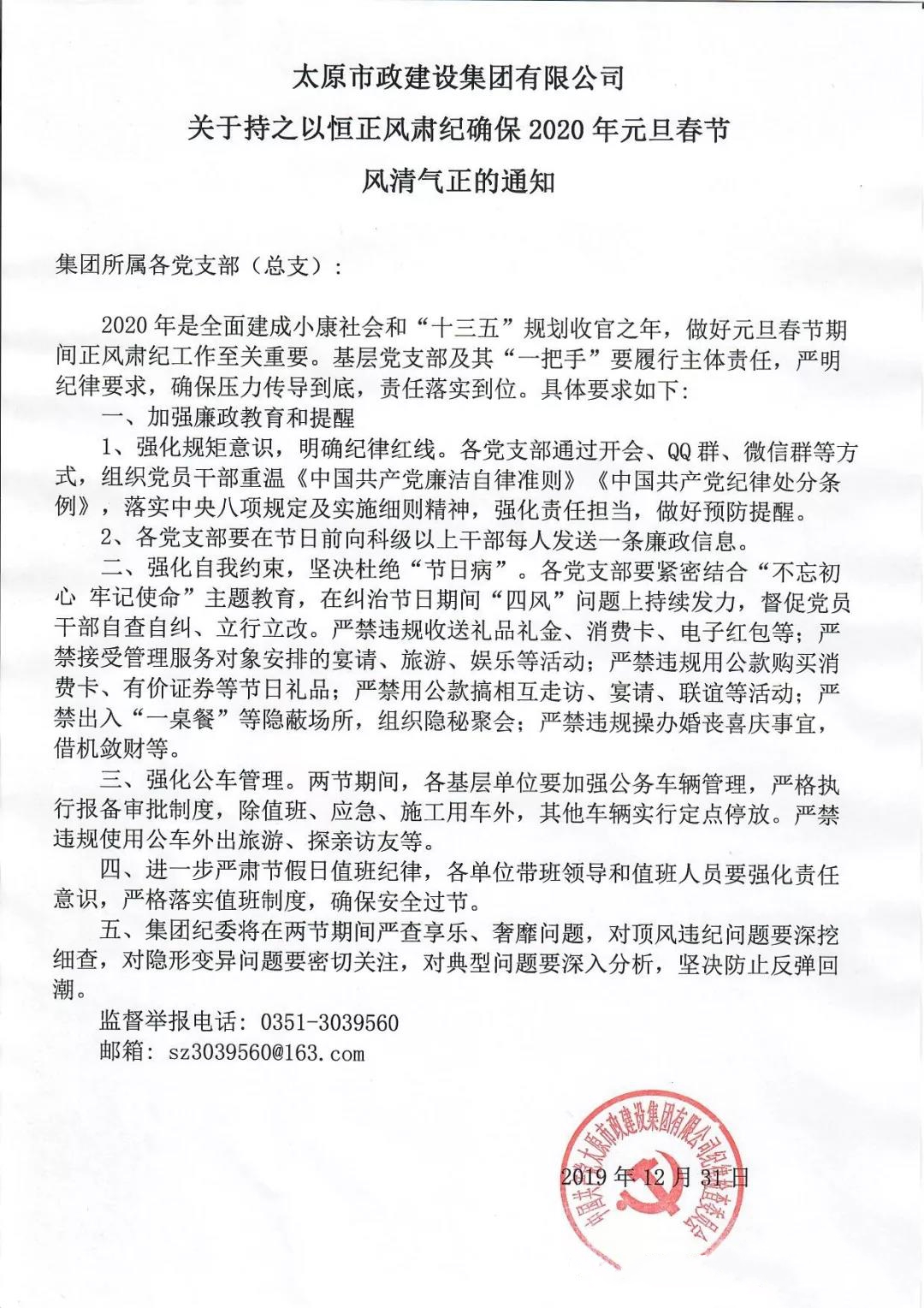 持之以恒正風(fēng)肅紀(jì)確保2020年元旦春節(jié)風(fēng)清氣正的通知 發(fā)布時(shí)間:2020-01-23 15:17:24 來(lái)源:本站 閱讀:20835