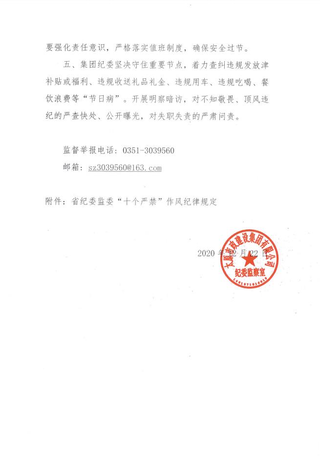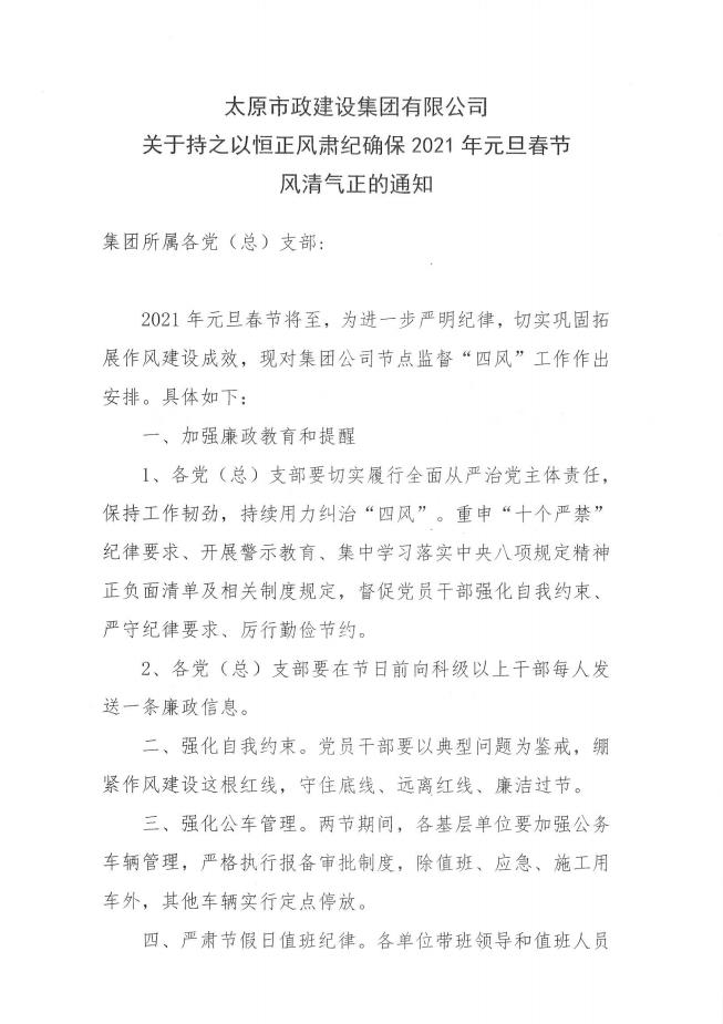 太原市政建設集團有限公司關于持之以恒正風肅紀確保2021年元旦春節(jié)風清氣正的通知