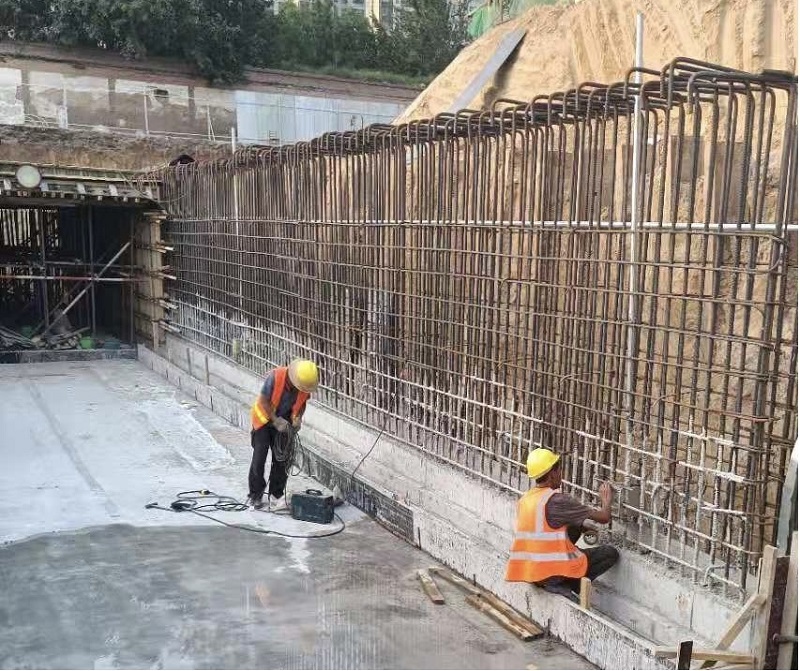 在K1+030處施工時(shí),南北方向有一條地下人行通道,項(xiàng)目部需要在通道內(nèi)安裝疏散指示燈、應(yīng)急指示燈、熒光燈等。在施工過程中,項(xiàng)目部緊跟道路施工方的施工進(jìn)度,當(dāng)?shù)缆肥┕し侥竟ぶ鹉>邥r(shí),項(xiàng)目部相關(guān)施工人員需要立即將鋼管預(yù)埋進(jìn)鋼筋架中,這就需要項(xiàng)目部和道路施工方緊密配合,施工員每日緊盯施工進(jìn)度,見縫插針式地完成管線預(yù)埋工序,為后續(xù)施工奠定了基礎(chǔ)。由于前期設(shè)計(jì)圖與施工實(shí)際情況有出入,無法確定電源箱的具體位置,現(xiàn)場技術(shù)負(fù)責(zé)人多次與設(shè)計(jì)院聯(lián)系,經(jīng)過不斷實(shí)地勘察、測量、畫圖對照,最終確定電源箱的實(shí)際位置,并在道路上增加了多條鋼管過路,確保送電時(shí)萬無一失。