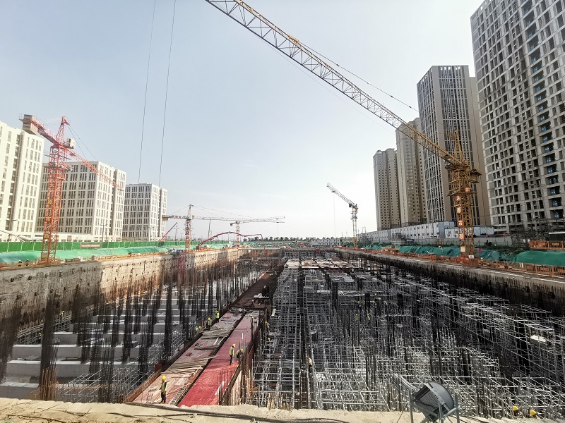 自開工以來,項目部從工程前期的超前謀劃、要素保障,到建設中的部署落實、節(jié)點把握,先后按工期節(jié)點目標完成了三軸攪拌樁、地下連續(xù)墻、冠梁、錨索、底板等重點工序。在施工建設開足馬力的背后,正是依靠項目部一項項“硬核”組織保障的強力支撐。同時,項目部建立健全以項目經(jīng)理為責任人的質量安全管理體系,緊盯目標任務,搶抓時間節(jié)點,強管理、抓落實、促進度,統(tǒng)籌部署人員配置、材料供應、機械保障等方面,全體參建人員壓實崗位責任,采取“白+黑、5+2”模式,緊跟節(jié)點不松勁,加班加點確保各工序有序推進,同頻共振點燃助推項目發(fā)展的強引擎。