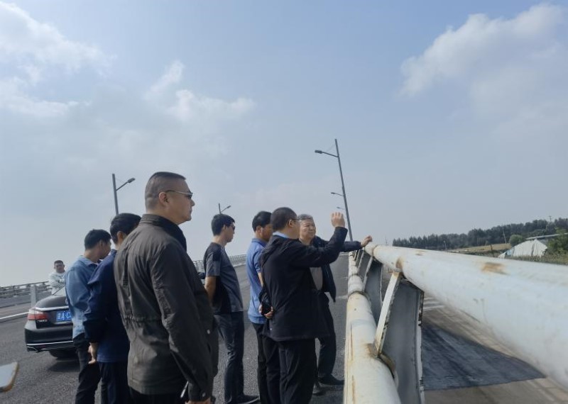 施工現(xiàn)場,集團公司領(lǐng)導一行聽取了相關(guān)負責人對目前項目進度的匯報,仔細查看和詢問了橋面瀝青攤鋪和道路剩余工程量等情況,對橋梁防撞墻的施工效果和質(zhì)量表示肯定,并就工程質(zhì)量、安全、進度等提出指導性意見。