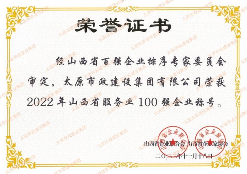 近日,集團公司榮獲山西省企業(yè)聯(lián)合會和山西省企業(yè)家協(xié)會頒發(fā)的“山西省功勛企業(yè)”和“山西省100強”(排名第45位)“山西省服務(wù)業(yè)100強”榮譽稱號。集團公司黨委副書記、副董事長、總經(jīng)理溫慧武榮獲“太原市功勛企業(yè)家”榮譽稱號。