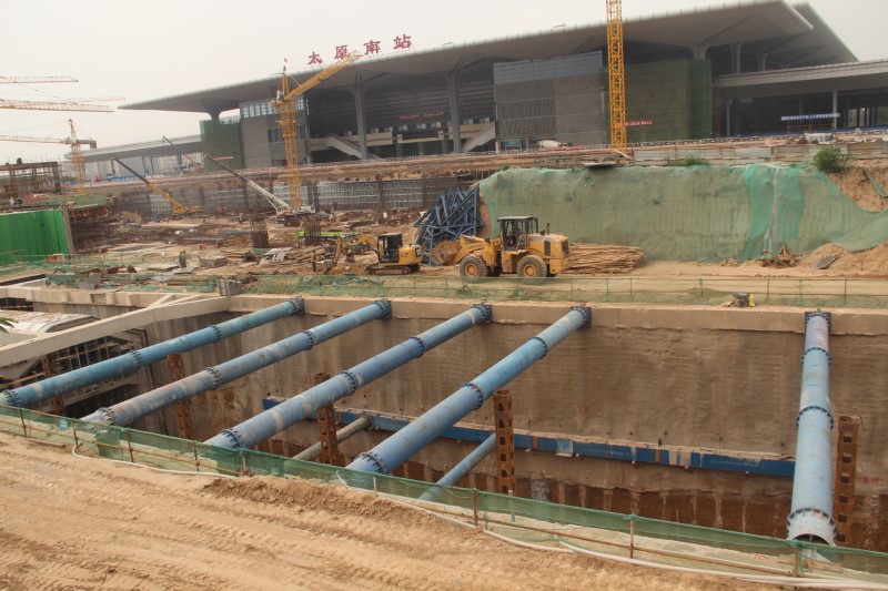 太原南站東廣場配套路網(wǎng)工程位于太原南站東側(cè),西起太原火車南站東出口,東至太行路,南至車站南街以南200米,北至南中環(huán)街,共包括10條市政道路、五條高架匝道引橋及所屬沿線的照明、管線等配套設(shè)施,同時外加2條貴賓小路。其中,北營北路包含地下通道及地面道路兩部分,地下通道全長1124米。該工程作為省級重點工程項目,受到了社會各界的重點關(guān)注和上級領(lǐng)導(dǎo)的高度重視,于2017年4月開工建設(shè),由八公司負(fù)責(zé)承建。施工中的重難點在于北營北路地下通道最深處達(dá)21米的深基坑施工,項目部采用混凝土灌注樁加內(nèi)支撐的模式,第一 道內(nèi)支撐為混凝土支撐,其余為多道鋼支撐,保證基坑壁穩(wěn)定性。地下通道施工時,該通道頂板為折線拱形頂板,澆筑難度較大,項目部組織技術(shù)人員根據(jù)工程特點,研究出一種全新的支模方法,利用插模板的方式進(jìn)行分段澆筑,在確保工程質(zhì)量的同時,保證施工進(jìn)度。同時,由于該工程情況復(fù)雜,項目部技術(shù)人員從“細(xì)節(jié)”入手,及時發(fā)現(xiàn)問題,并反復(fù)溝通協(xié)調(diào),提出了合理化建議,確保了工程有序推進(jìn)。在2019年的施工過程中,集團(tuán)公司組織五家施工單位,60多臺施工機(jī)械、130多名施工人員,經(jīng)過21天的奮戰(zhàn),協(xié)作完成10條道路從路基、水穩(wěn)到瀝青攤鋪的施工任務(wù),其中瀝青攤鋪面積達(dá)到7萬平方米。全體參建人員在太原城市建設(shè)的“戰(zhàn)場”上,傾情演繹著市政鐵軍的“速度與激情”,太原南站以嶄新的面貌迎接“二青會”的八方來客。