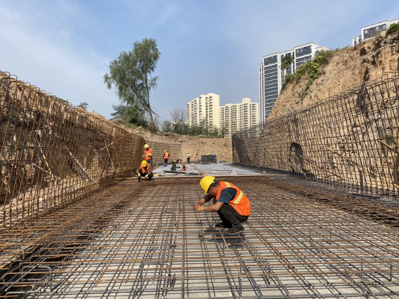 10月4日清晨,一公司承建的亞日街道路建設(shè)工程施工現(xiàn)場(chǎng)一片繁忙景象,全體施工人員堅(jiān)守崗位,全力以赴投入到緊張施工中,力求高質(zhì)量完成工程任務(wù)。該工程場(chǎng)地狹窄,周邊建筑物密集,且雨污水管線需下穿現(xiàn)狀國(guó)防光纜、電力、燃?xì)狻崃Φ染C合管線。上午8點(diǎn),施工現(xiàn)場(chǎng)各類機(jī)械轟鳴運(yùn)轉(zhuǎn),工程車輛忙碌穿梭,項(xiàng)目部嚴(yán)把各道工序,守牢細(xì)節(jié)質(zhì)量關(guān),針對(duì)管道檢查井埋深均超過5米的實(shí)際情況,施工人員采用倒掛法開展拖拉管工作井施工,利用分層澆筑振搗密實(shí)方法,當(dāng)?shù)谝还?jié)混凝土達(dá)到規(guī)定強(qiáng)度后,便拆除模板開展第二節(jié)倒掛井壁施工,如此循環(huán)直至達(dá)到設(shè)計(jì)井底,目前已完成工作井、接收井高壓旋噴樁支護(hù)工作,正在進(jìn)行接收井冠梁及一模澆筑。全體施工人員爭(zhēng)分奪秒、堅(jiān)守一線,以時(shí)不我待、使命必達(dá)的決心和干勁,為城市建設(shè)添磚加瓦。