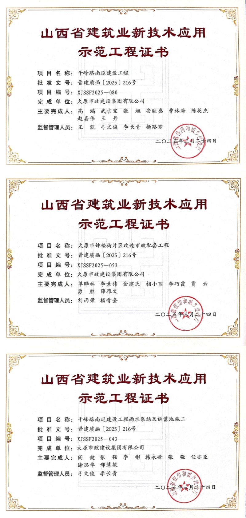 簡訊一:近日,由集團(tuán)公司承建的千峰路南延建設(shè)工程雨水泵站及調(diào)蓄池施工、太原市鐘樓街片區(qū)改造市政配套工程、千峰路南延建設(shè)工程被山西省住房和城鄉(xiāng)建設(shè)廳評為“山西省新技術(shù)應(yīng)用示范工程”。