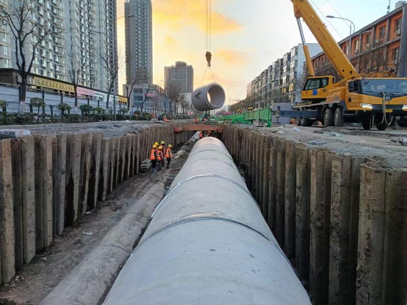 該工程位于勝利街,工程北澗河至解放路段道路全長(zhǎng)1.74公里,規(guī)劃紅線寬度50米,污水管線主線長(zhǎng)度為1919.5米,雨水管線主線長(zhǎng)度為888.1米,雨污水管道施工采用明挖法與頂管施工相結(jié)合的方式。在新建管線區(qū)域,開挖深度超過(guò)5米,為確保施工安全,同時(shí)最大限度減少對(duì)周邊居民區(qū)的影響,基坑溝槽采用拉森鋼板樁進(jìn)行支護(hù)。為保證鋼板樁施打位置準(zhǔn)確無(wú)誤,施工人員在溝槽開挖后先進(jìn)行場(chǎng)地平整,同時(shí)測(cè)量員進(jìn)行定位,每隔兩米在中心線上插入鋼筋頭,以確保標(biāo)記的準(zhǔn)確性。打樁前,施工人員對(duì)鋼板樁進(jìn)行逐個(gè)檢查。在插打過(guò)程中,實(shí)時(shí)進(jìn)行監(jiān)測(cè),保證每片鋼板樁的斜度不超過(guò)2%,樁體打入后,立即進(jìn)行閉水性檢查,對(duì)漏水部位進(jìn)行焊接修補(bǔ),并安排專人每日對(duì)樁體進(jìn)行檢查。項(xiàng)目部不斷提升施工安全管理水平,嚴(yán)格把控所有環(huán)節(jié),確保高標(biāo)準(zhǔn)高質(zhì)量完成每一項(xiàng)工作。
