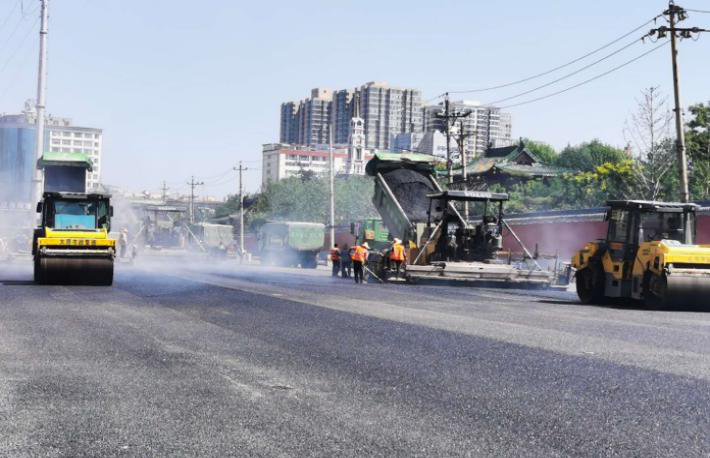 8月13日早上9點(diǎn),隨著攤鋪機(jī)的隆隆聲響,二公司承建的解放路改造工程二標(biāo)段開始中面層瀝青混凝土的攤鋪工作。在施工現(xiàn)場(chǎng),攤鋪機(jī)齊頭并進(jìn),壓路機(jī)來回穿梭,運(yùn)料車在工作人員的指揮下,正在有條不紊地進(jìn)行作業(yè)。項(xiàng)目部全體施工人員分工明確,測(cè)量人員手持水準(zhǔn)儀,對(duì)路面標(biāo)高精準(zhǔn)測(cè)量,提前測(cè)算出鋪設(shè)厚度;質(zhì)檢員頭頂烈日,用測(cè)溫計(jì)等設(shè)備,監(jiān)督鋪設(shè)的溫度和厚度,并對(duì)瀝青樣品抽樣檢驗(yàn),精細(xì)把控工程質(zhì)量;現(xiàn)場(chǎng)施工人員充當(dāng)臨時(shí)交通員,疏通運(yùn)料車,維護(hù)周邊行人秩序,確保攤鋪工作的順利進(jìn)行;材料員盯守施工現(xiàn)場(chǎng),隨時(shí)聯(lián)系供料方,確保瀝青料的及時(shí)供應(yīng)……