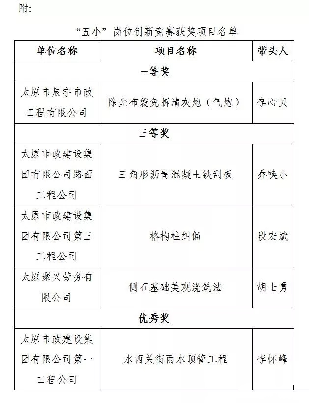 另訊,集團(tuán)公司五項(xiàng)創(chuàng)新項(xiàng)目被市總工會(huì)評(píng)為“‘五小’崗位創(chuàng)新競(jìng)賽獲獎(jiǎng)項(xiàng)目”稱號(hào)。