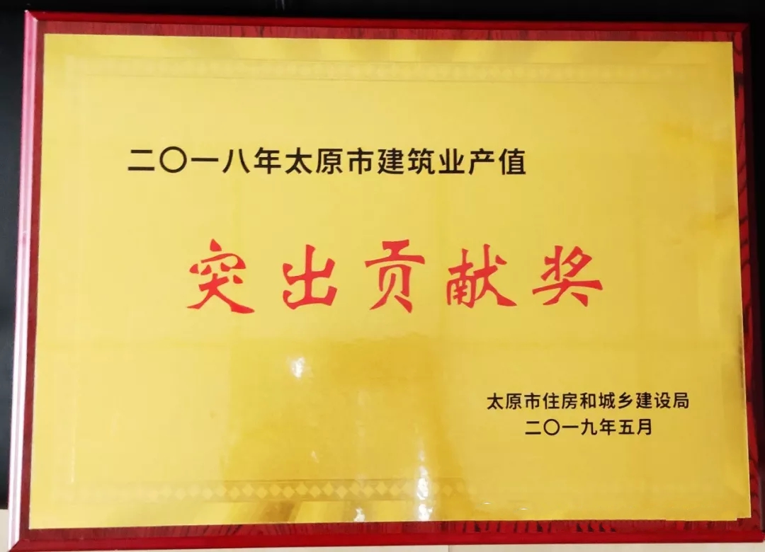 太原市政建設集團有限公司榮獲“2018年太原市建筑業(yè)產值突出貢獻獎”