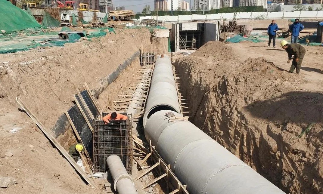 施工過程中,該區(qū)域地下管線情況復雜密集,多條管線需要改遷,項目部編制專項施工方案,提前做好大量準備工作,確保施工安全。