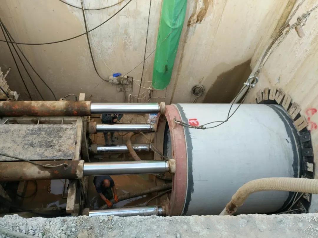該工程全線位于尖草坪區(qū)新店村,為整個(gè)北線防洪工程的起點(diǎn),全長700米,其中230米為頂管工程,470米為開挖工程。施工中,面對拆遷進(jìn)展緩慢的情況,項(xiàng)目部不等不靠,主動(dòng)作為,積極與各產(chǎn)權(quán)單位及設(shè)計(jì)部門聯(lián)絡(luò)溝通,加快拆遷進(jìn)度,最終將施工管道位置調(diào)整到位于河道中間,順利解決拆遷問題;開挖過程中,因河道內(nèi)淤泥量大、水位高,且清淤后仍有大量鐵渣不易清理,每天只能開挖和吊裝三根管,項(xiàng)目部快速制定施工方案,采用“挖機(jī)+炮錘”的開挖方式,先使用炮錘破碎鐵渣,在利用挖機(jī)進(jìn)行開挖,快速推進(jìn)開挖進(jìn)度,為后續(xù)施工贏得更多時(shí)間;在105井頂管過程中,因其前方有礦渣層導(dǎo)致推進(jìn)受阻,項(xiàng)目部在保證頂管持續(xù)頂進(jìn)的同時(shí),采用挖機(jī)將礦渣層快速清除,防止了誤工情況發(fā)生。