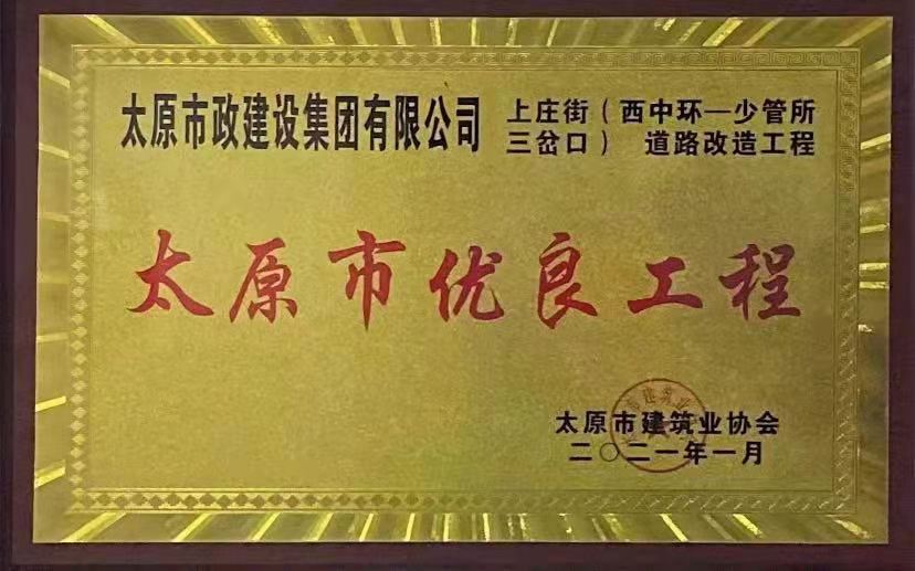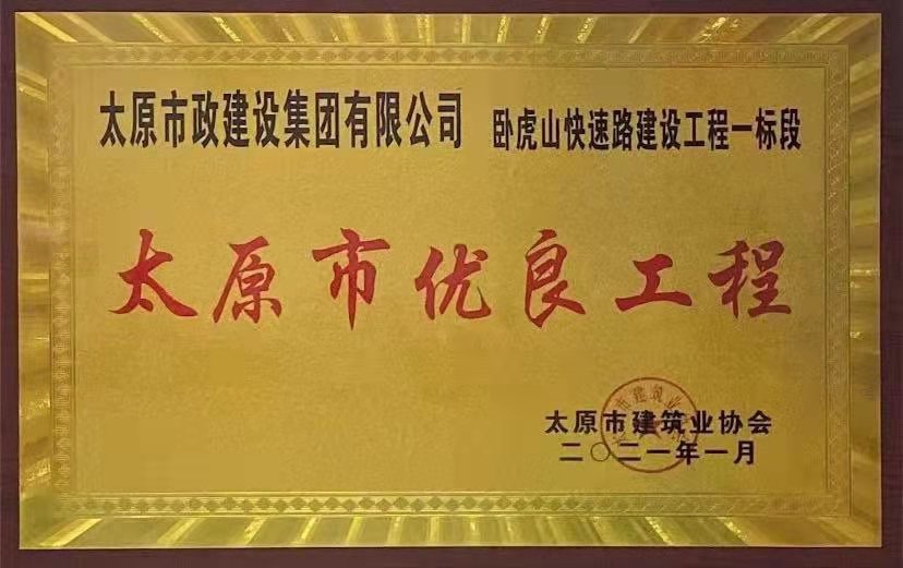 2021年1月13日,集團公司承建的晉陽污水廠主干管工程四標段、太茅路改造工程二標段、臥虎山快速路建設(shè)工程一標段、上莊街(西中環(huán)——少管所三岔口)道路改造工程被太原市建筑業(yè)協(xié)會評為2020年“太原市優(yōu)良工程”,工程項目經(jīng)理郝東輝、高鴻、李瑞金被評為“2020年度太原市工程建設(shè)優(yōu)秀項目經(jīng)理”。